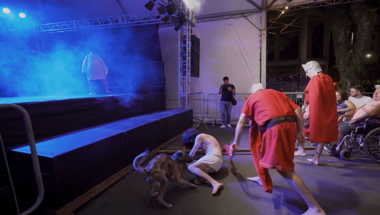 CADELA INVADE PALCO E “DEFENDE” ATOR QUE INTERPRETAVA JESUS CRISTO EM ENCENAÇÃO DA PAIXÃO DE CRISTO