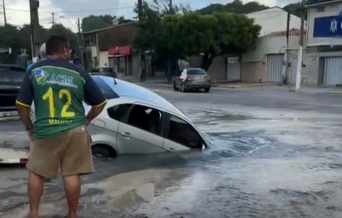 O asfalto de uma rua do bairro Coaçu, em Fortaleza (CE), cedeu na manhã desta quarta-feira (28) e “engoliu” um carro que trafegava pelo local. O motorista, que trabalha como entregador de salgados, estava na região para realizar uma entrega quando o veículo afundou repentinamente na via. Em entrevista a TV Verdes Mares, o condutor relatou que não havia sinal de buraco antes do acidente. “Não tinha buraco, não tinha nada. Quando eu passei devagar e parei para ver se vinha algum carro, só desceu. O cinto começou a me sufocar, encheu de água rápido e o vizinho me atendeu. A própria população viu a situação, correu e me puxou”, descreveu o condutor. Moradores acionaram a Autarquia Municipal de Trânsito e Cidadania (AMC) e a Companhia de Água e Esgoto do Ceará (Cagece), mas, até a última atualização desta reportagem, os órgãos não haviam prestado apoio à ocorrência.